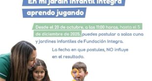 Entre el lunes 20 de octubre y el viernes 5 de diciembre, las familias de la región podrán participar en el proceso de postulación 2026, a las salas cuna y jardines infantiles de Fundación Integra de las provincias de Antofagasta, Calama y Tocopilla, oferta de educación parvularia pública gratuita y …