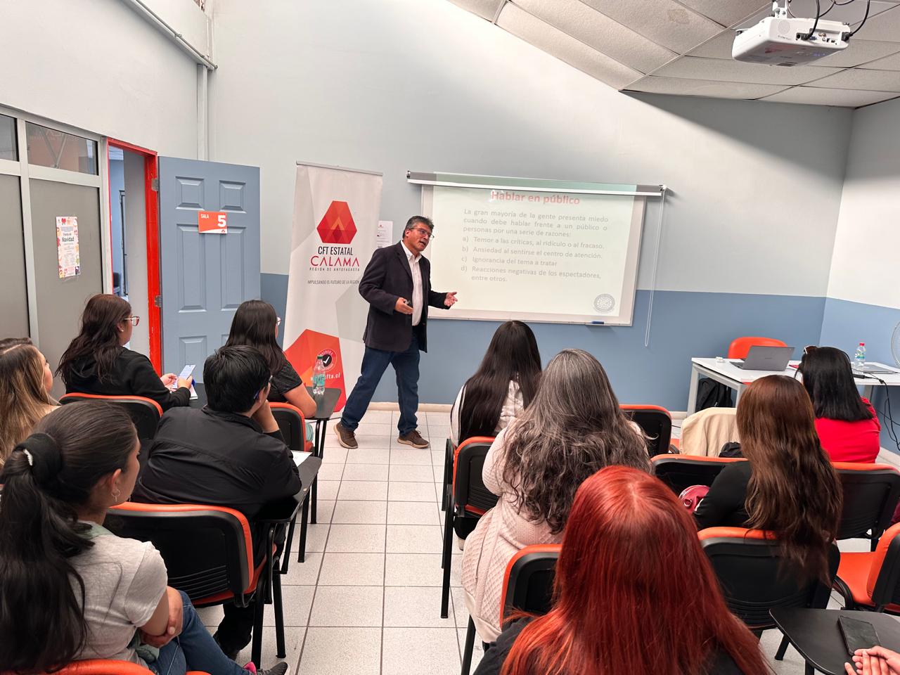 Con el propósito de entregar herramientas que fortalezcan la comunicación efectiva en entornos profesionales, el Centro de Formación Técnica (CFT) Estatal de la Región de Antofagasta, a través de su área de Vinculación con el Medio, desarrolló un taller “Cómo hablar y expresarse formalmente en el ámbito profesional”, dirigida a sus egresadas y egresados de Calama.