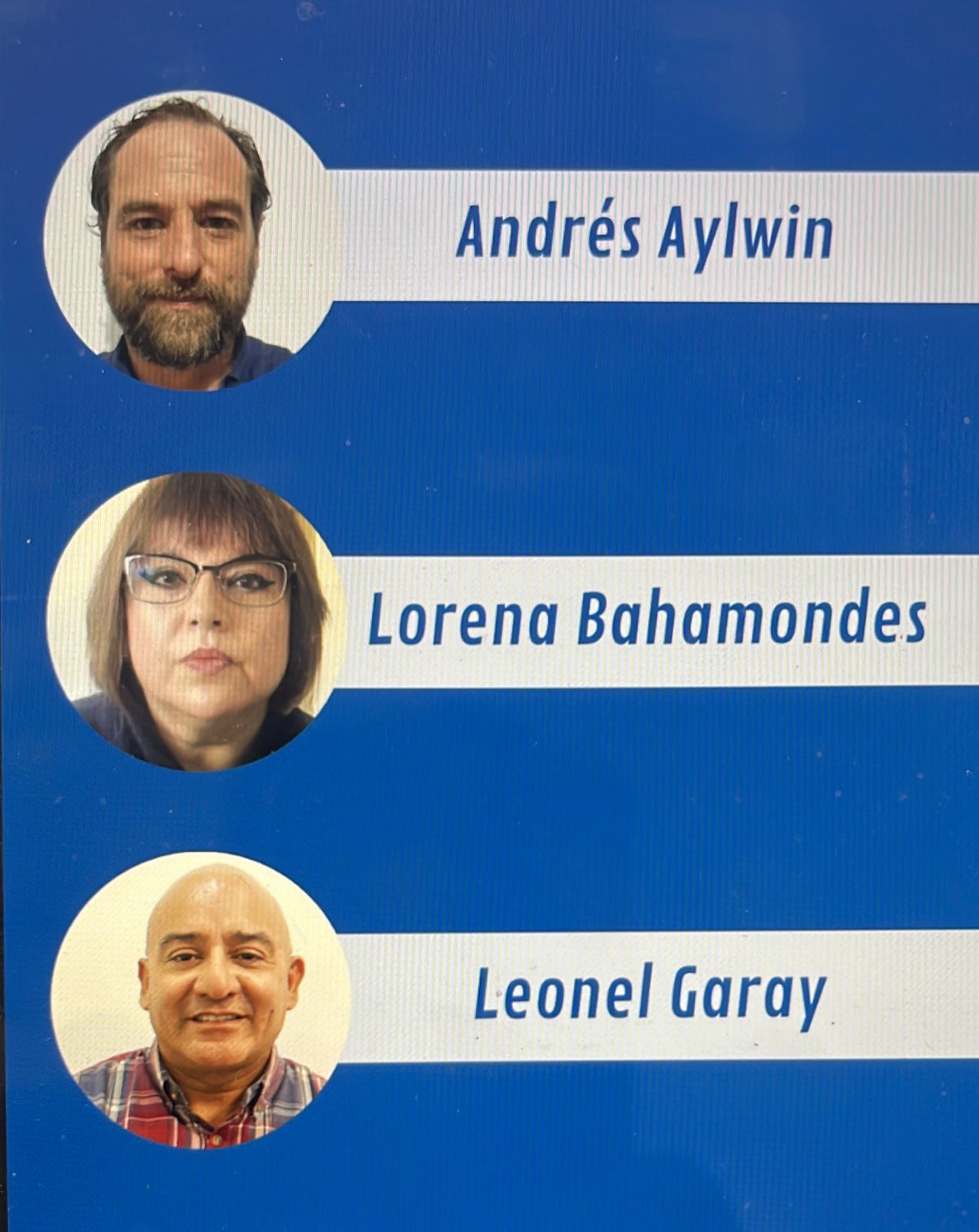 En esta instancia eleccionaria participan como candidatos y candidata al Consejo Nacional los siguientes profesionales: Andrés Aylwin Correa; Lorena Bahamondes Romero y Leonel Garay Parra.